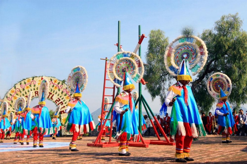 Durante todo el día tienen lugar exhibiciones de música y danzas tradicionales por parte de cada grupo. Se corona a la Xochicíhuatl, "la mujer flor", y a las Xochipilme o florecillas, seleccionadas entre las mujeres que mejor han representado la tradición en su vestido. Las danzas y rituales se suceden todo el día y culminan con los hombres pájaro. ![]() ![]() |